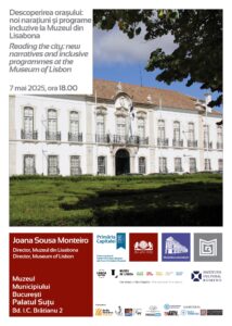 Muzeul Municipiului București, în parteneriat cu Institutul Cultural Român din Lisabona și Muzeului orașului Lisabona, invită publicul la Conferința pe care o va susține Joana Sousa Monteiro, director al Muzeului din Lisabona, la Palatul Suțu (Bd. Ion C. Brătianu, nr. 2). Evenimentul va avea loc miercuri, 7 mai 2025, începând cu ora 18.00, iar tema va fi „Descoperirea orașului: noi narațiuni și programe incluzive la Muzeul din Lisabona” / „Reading the City: New Narratives and Inclusive Programmes at the Museum of Lisbon”. Întâlnirea este dedicată muzeografiei contemporane și viitorului orașelor în muzee.